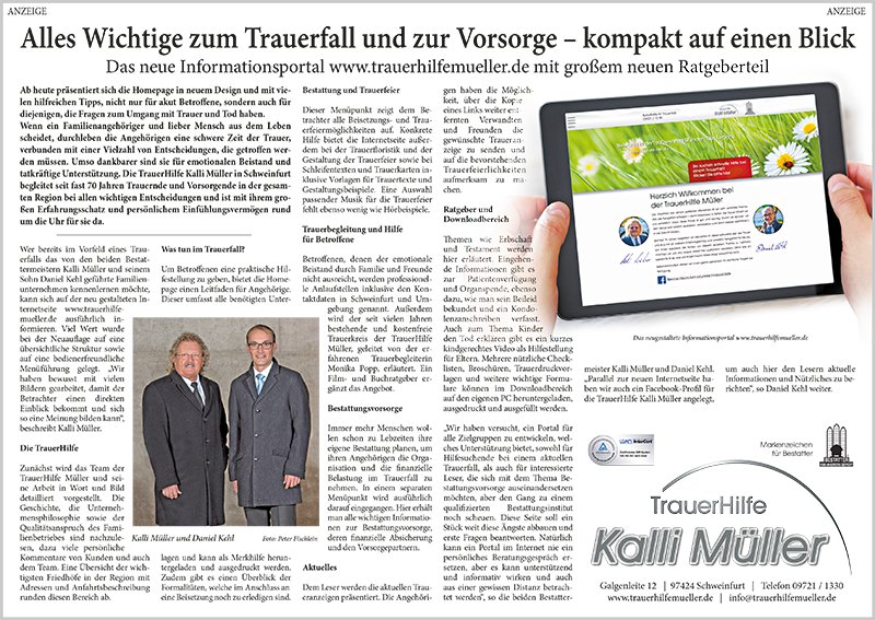 Neben der Schaltung in der Zeitung finden Sie Ihre Traueranzeige auch hier auf unserer Website: